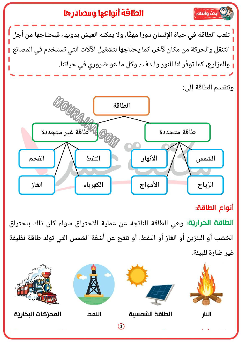 يتحدث البحث على الطاقة انواعها و مصادرها 2022 لمساعدة تلميذ سنة ثالثة ابتدائي في مراجعة دروسه و امتحاناته و ذلك عبر تحميله في صيغة ملف او مشاهدته في صيغة صور