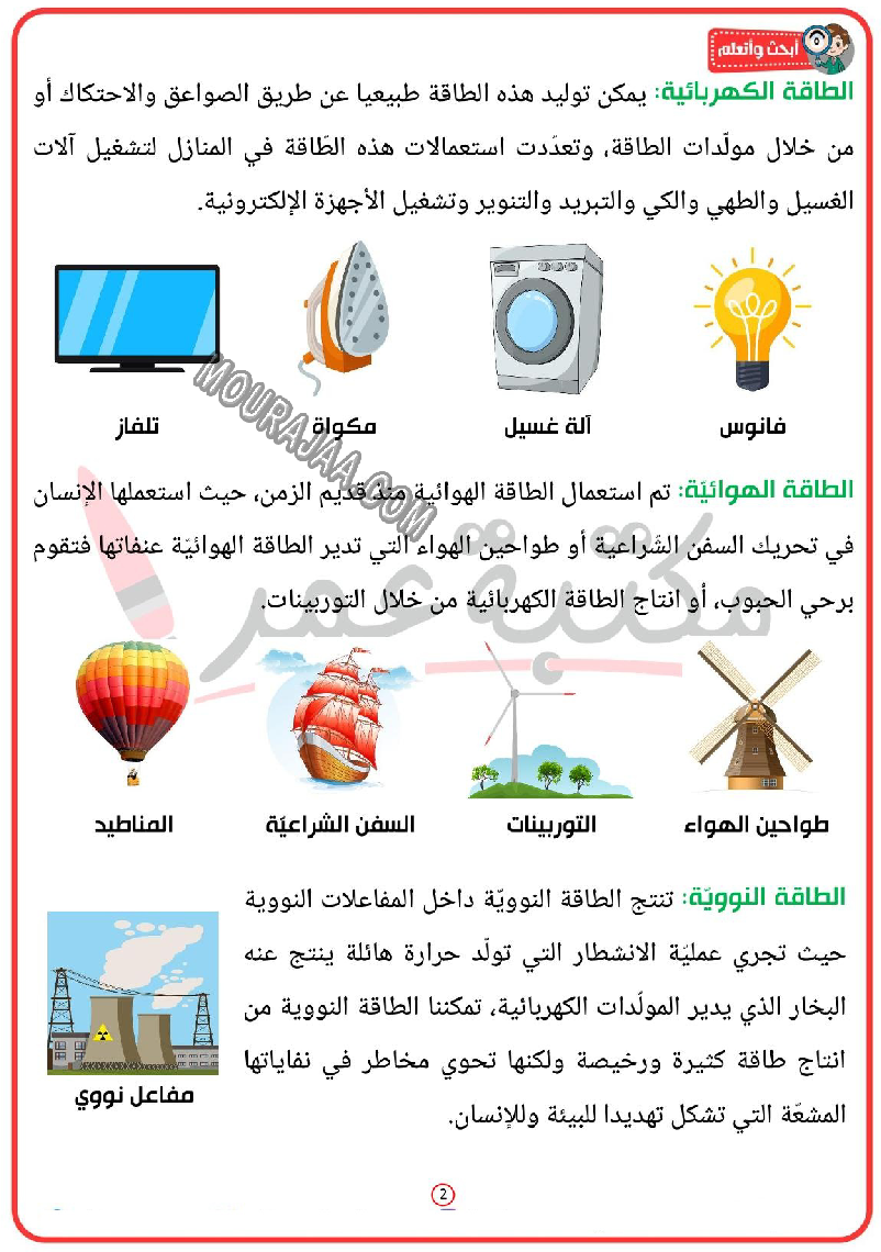 بحث حول الطاقة انواعها و مصادرها 2022 في مادة الايقاظ العلمي لتلاميذ سنة ثالثة ابتدائي
