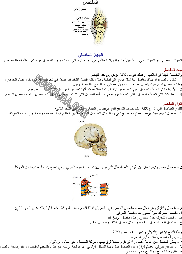 المفاصل هو عنوان لمحور درس مادة الايقاظ العلمي لـسنة خامسة ابتدائي