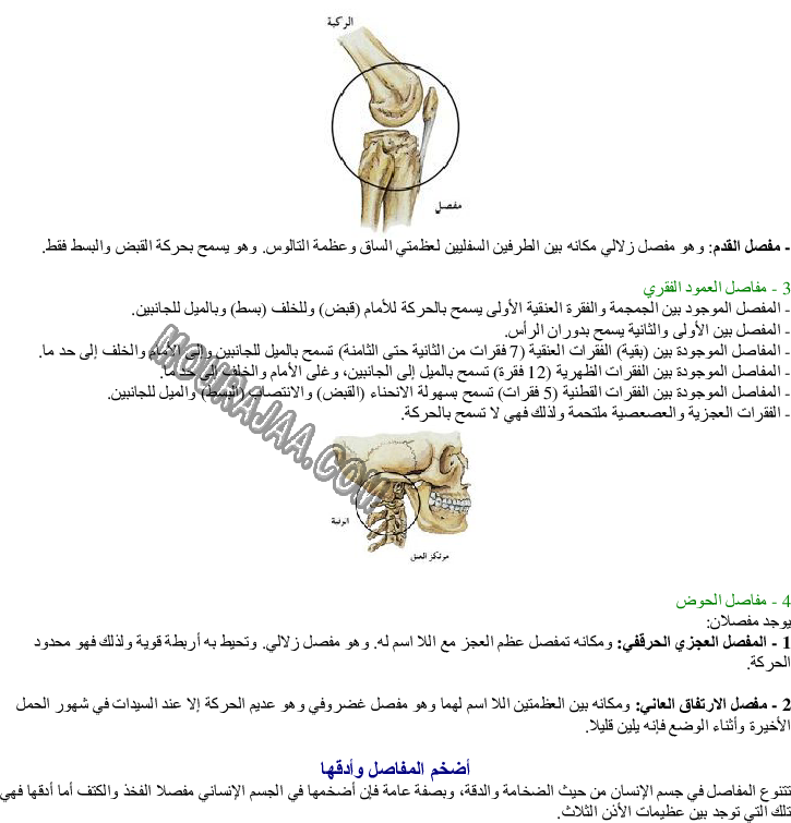 بحث حول المفاصل في مادة الايقاظ العلمي لتلاميذ سنة خامسة ابتدائي