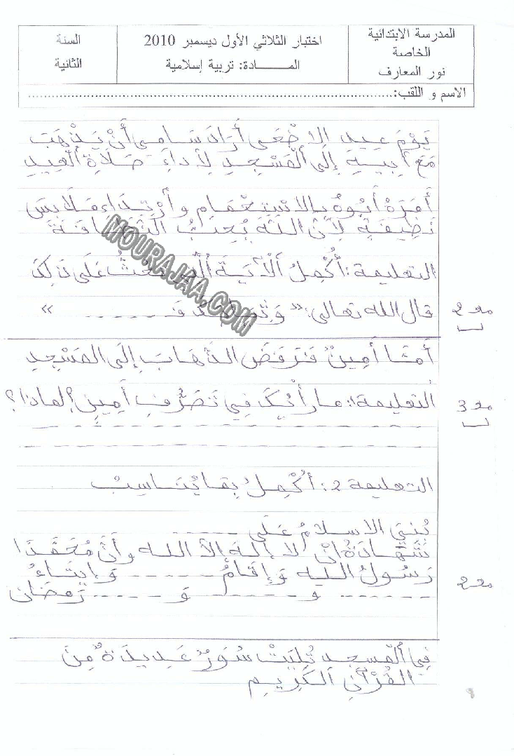 التربية الإسلامية-السنة الثانية-الثلاثي الأول-4