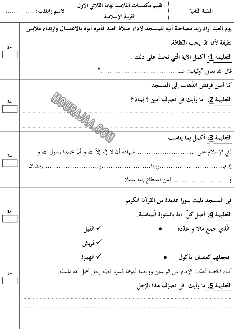 تربية اسلامية ثلاثي اول
