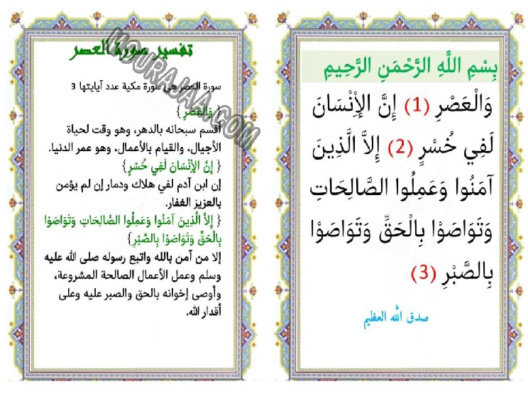 تفسير سور القرآن هو عنوان لمحور درس مادة تربية اسلاميةلسنة ثانية ابتدائي