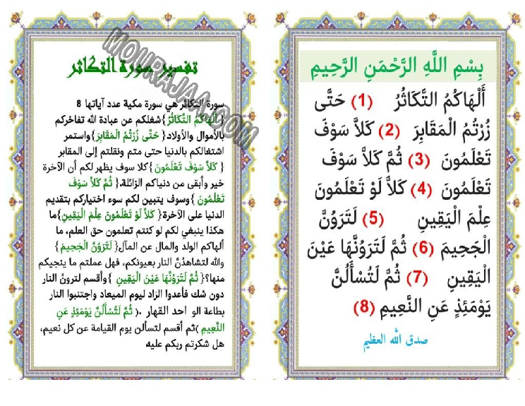 و يتمثل الدرس في تعريف و تلخيص تفسير سور القرآن و معلومات حوله مع صور لتبسيط درس تفسير سور القرآن في مادة تربية اسلاميةلسنة ثانية ابتدائي
