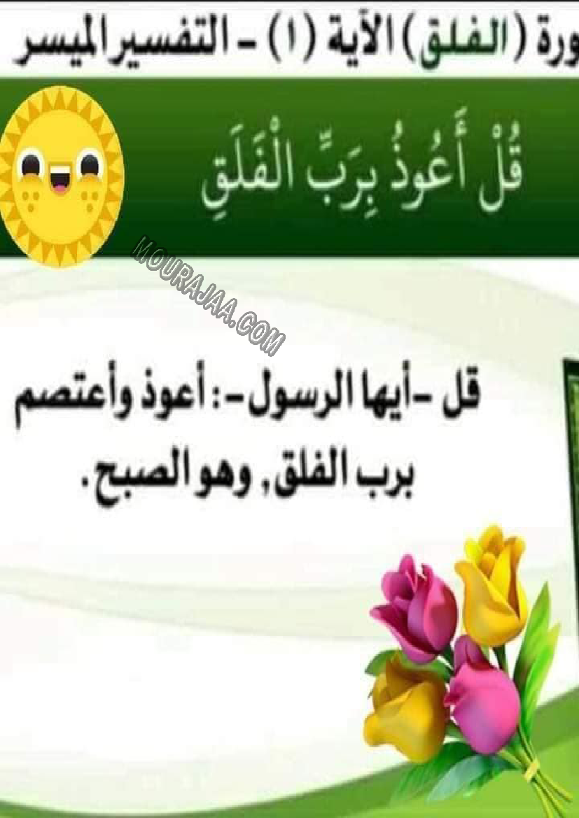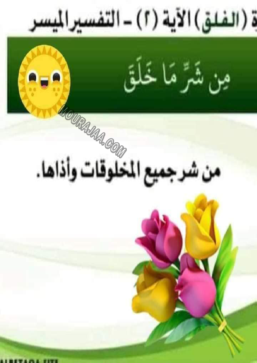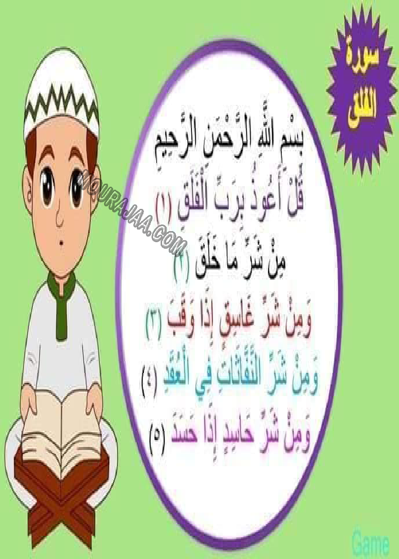 يتحدث الدرس على تفسير سورة الفلق للاطفال لمساعدة تلميذ سنة ثانية ابتدائي في مراجعة دروسه و امتحاناته و ذلك عبر تحميله في صيغة ملف او مشاهدته في صيغة صور