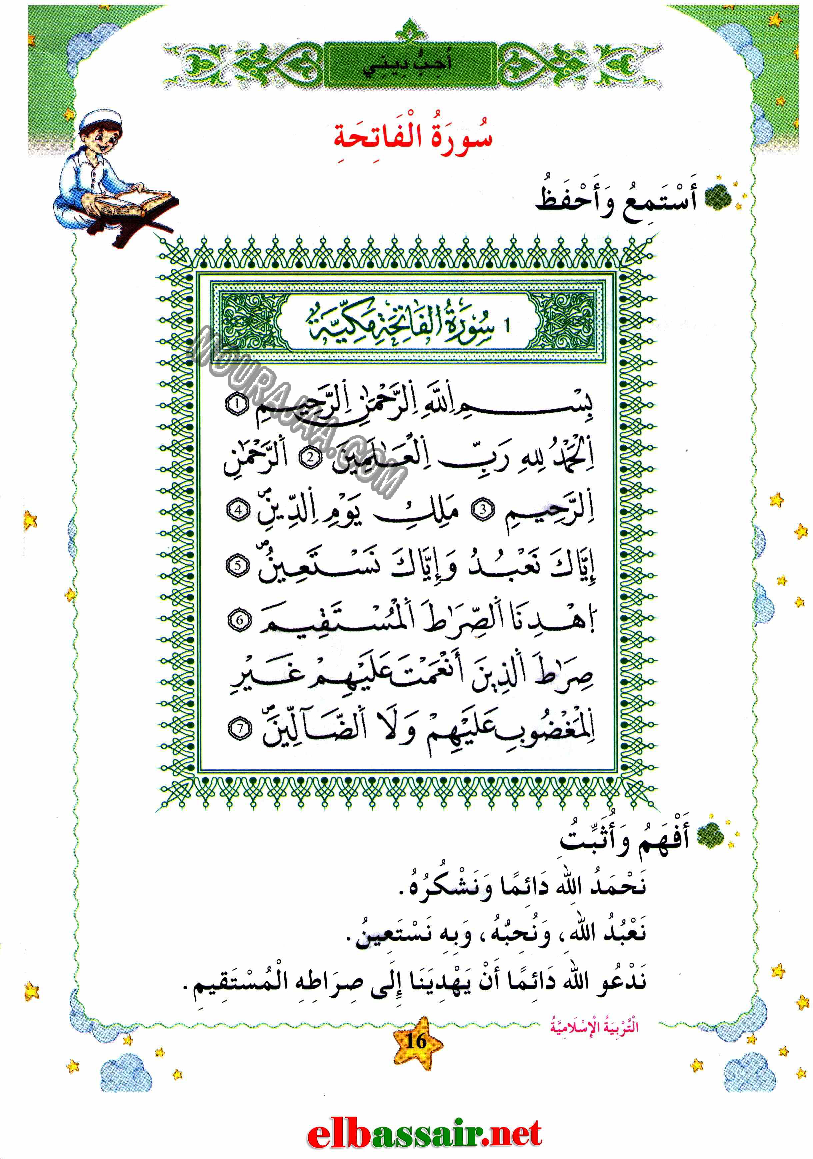 درس حول سورة الفاتحة في مادة تربية اسلامية لتلاميذ سنة ثانية ابتدائي