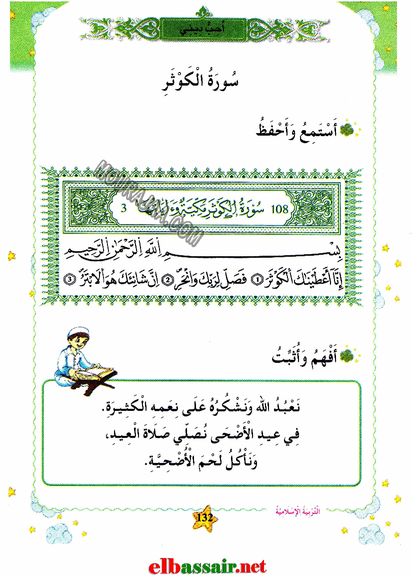 درس حول سورة الكوثر في مادة تربية اسلامية لتلاميذ سنة ثانية ابتدائي