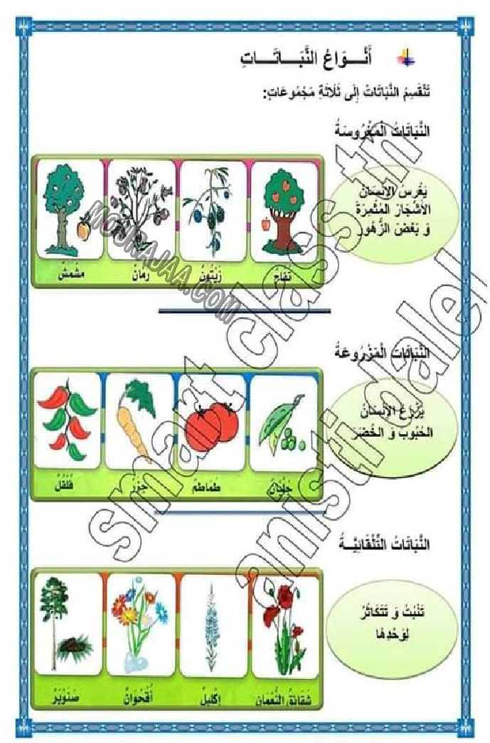 و يتمثل الدرس في تعريف و تلخيص انواع النباتات و معلومات حوله مع صور لتبسيط درس انواع النباتات في مادة ايقاظ علميلسنة ثانية ابتدائي