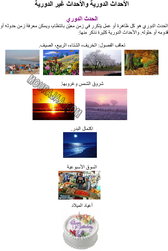 الأحداث الدورية والأحداث غير الدورية هو عنوان لمحور درس مادة الايقاظ العلمي لـسنة ثانية ابتدائي