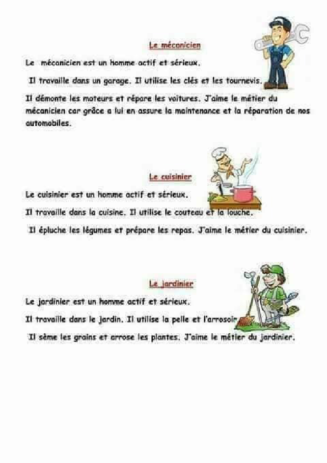 l affiche de Les métiers pour faciliter et simplifier la leçon Les métiers pour que l eleve de cinquieme annee primaire avoir de la compréhension profonde et la réalisation des sujets de la leçon