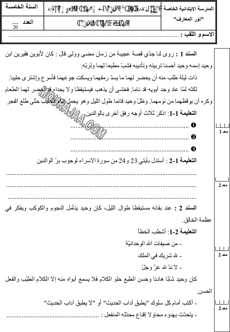 التربية الإسلامية-السنة الخامسة-الثلاثي الأول-1