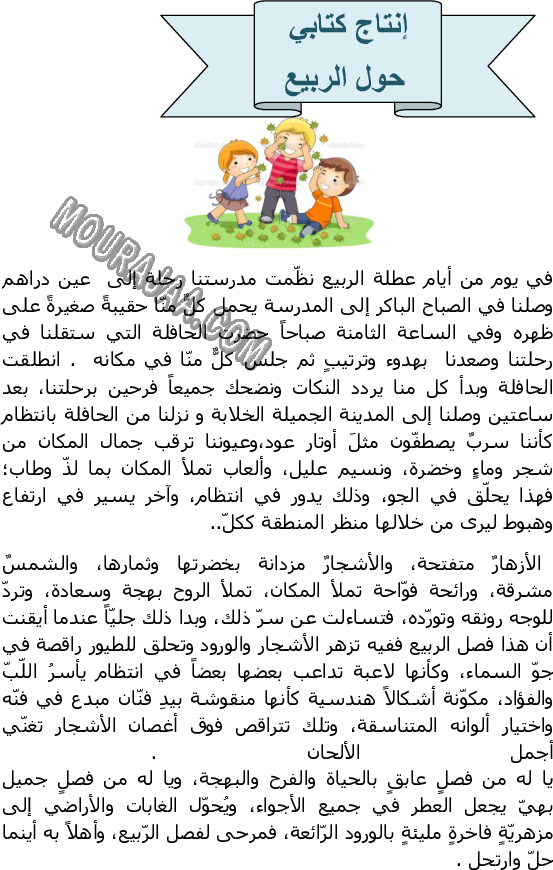 يتحدث البحث على إنتاج-كتابي-حول-الربيع لمساعدة تلميذ سنة أولى ابتدائي في مراجعة دروسه و امتحاناته و ذلك عبر تحميله في صيغة ملف او مشاهدته في صيغة صور