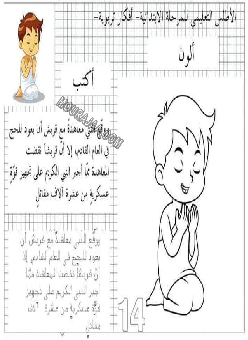 بحث حول قصة حياة الرسول انتاج كتابي في مادة الايقاظ العلمي لتلاميذ سنة أولى ابتدائي