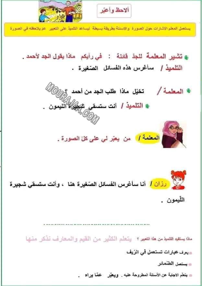 تعبير شفوي سنة اولى هو عنوان لمحور درس مادة انتاج كتابيلسنة أولى ابتدائي