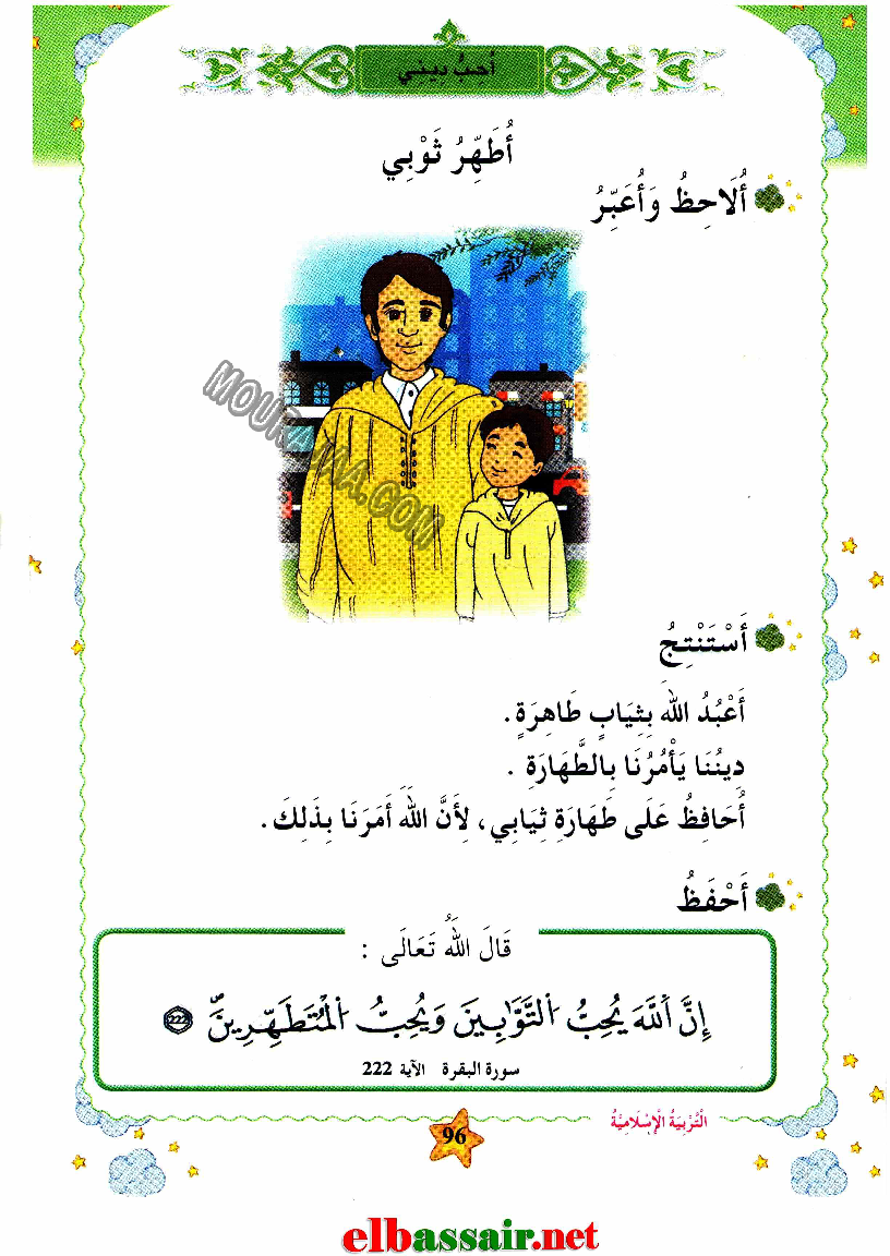 أطهر ثوبي هو عنوان لمحور درس مادة تربية اسلاميةلسنة أولى ابتدائي