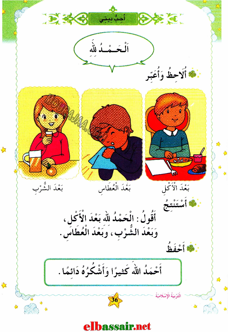 درس حول الحمد لله في مادة تربية اسلامية لتلاميذ سنة أولى ابتدائي