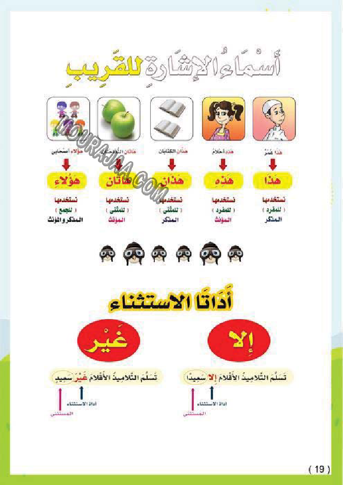 أسماء الاشارة هو عنوان لمحور درس مادة لغةلسنة أولى ابتدائي