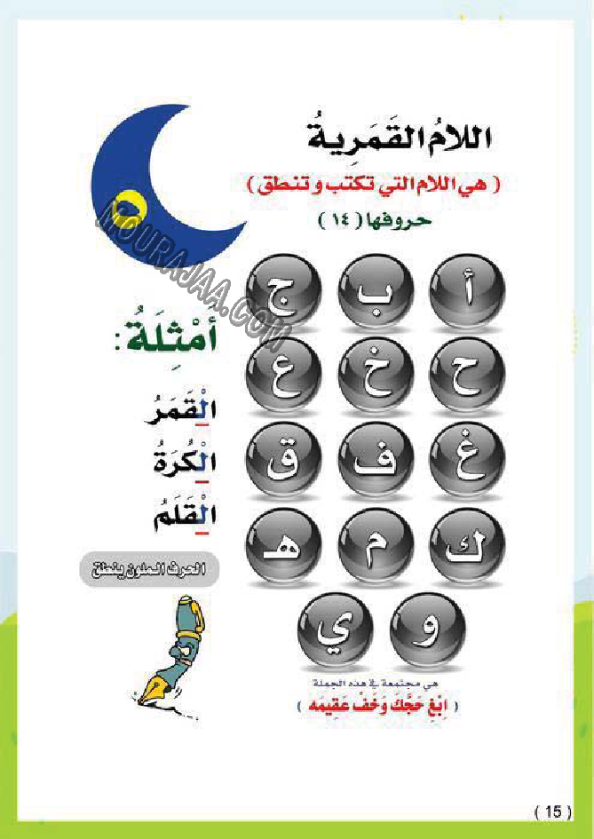 الام الشمسية و القمرية هو عنوان لمحور درس مادة لسنة أولى ابتدائي