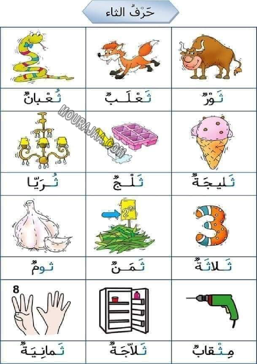و يتمثل الدرس في تعريف و تلخيص كلمات حرف الثاء و معلومات حوله مع صور لتبسيط درس كلمات حرف الثاء في مادة قراءةلسنة أولى ابتدائي