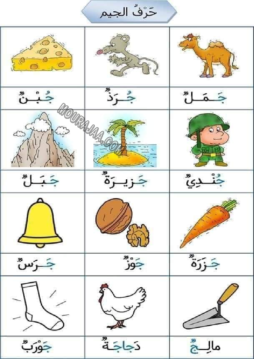 و يتمثل الدرس في تعريف و تلخيص كلمات حرف الجيم و معلومات حوله مع صور لتبسيط درس كلمات حرف الجيم في مادة قراءةلسنة أولى ابتدائي