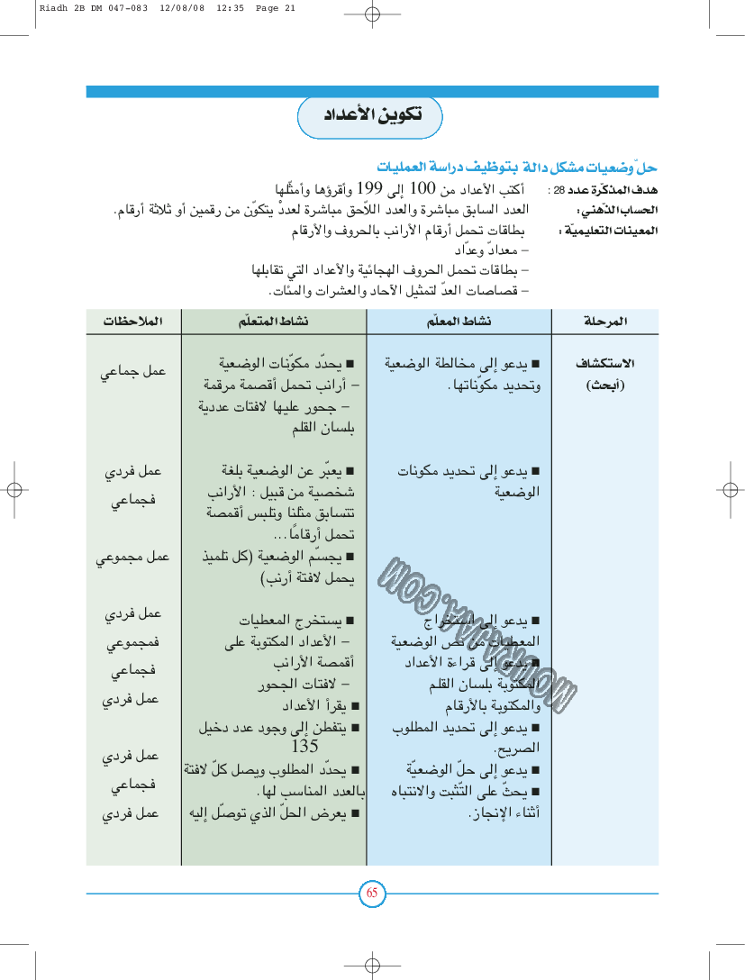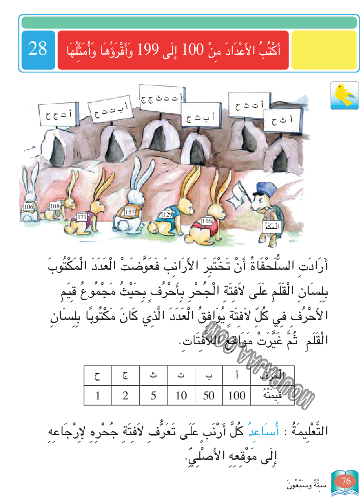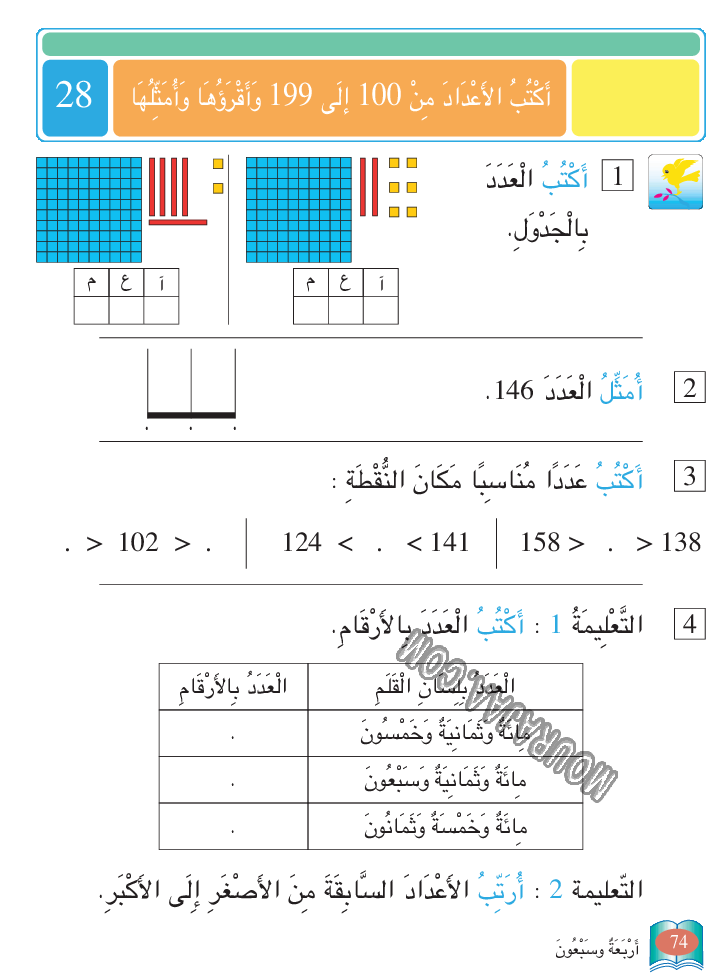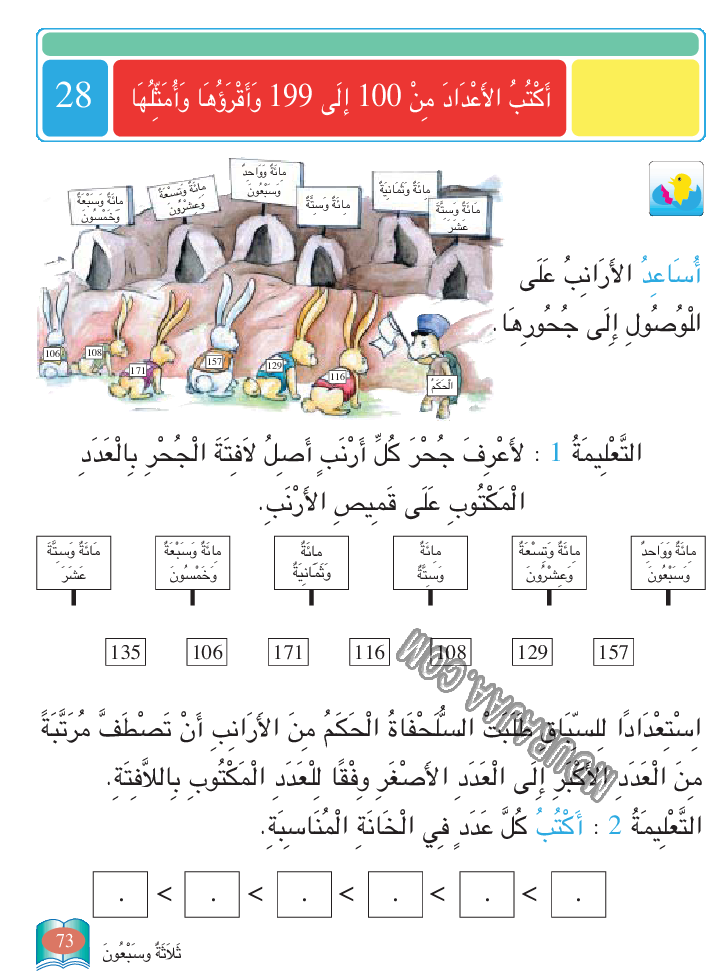 الاعداد 100-199 هو عنوان لمحور درس مادة رياضياتلسنة أولى ابتدائي