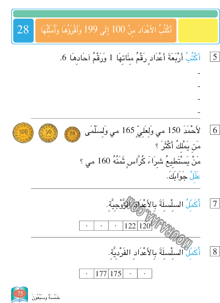 و يتمثل الدرس في تعريف و تلخيص الاعداد 100-199 و معلومات حوله مع صور لتبسيط درس الاعداد 100-199 في مادة رياضياتلسنة أولى ابتدائي