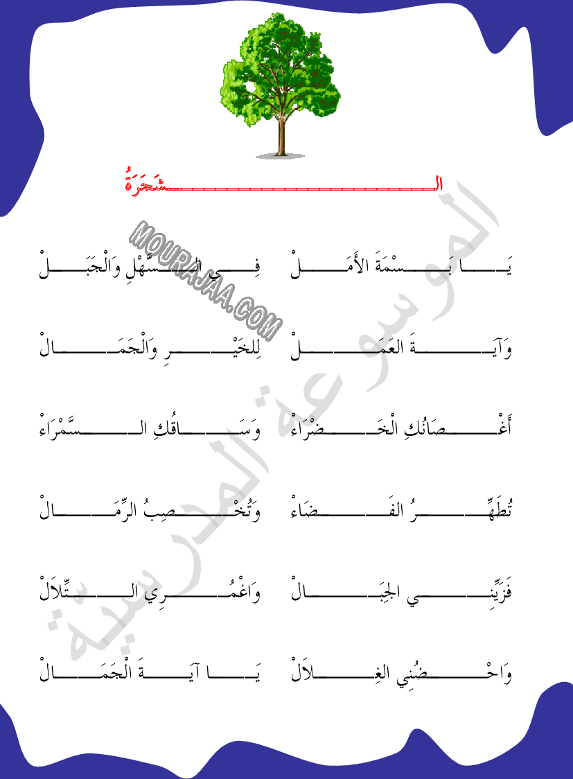 تساعد محفوظات محفوظات الشجرة السنة الأولى ابتدائي تلميذ سنة أولى ابتدائي التدريب على جودة الالقاء و حسن الالقاء و بالتالي التمثيل الاسمى لمعاني محفوظات محفوظات الشجرة السنة الأولى ابتدائي