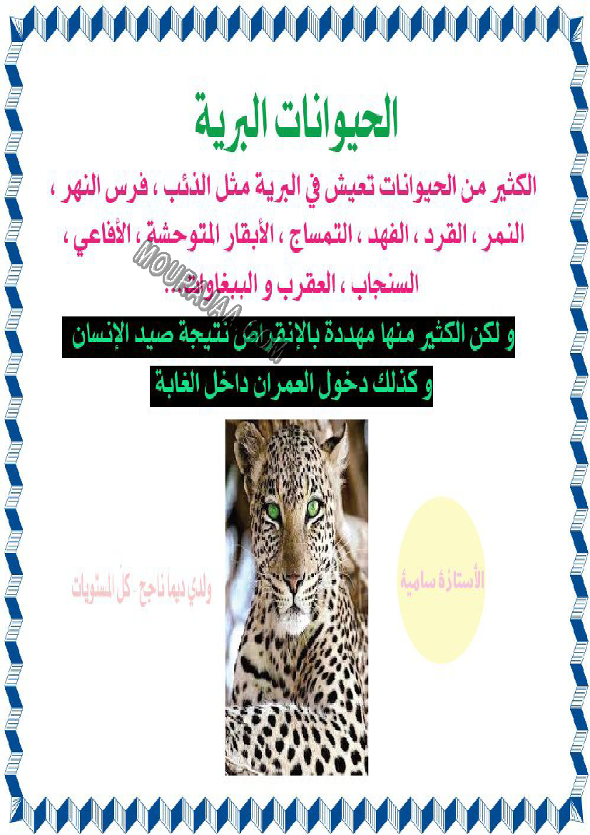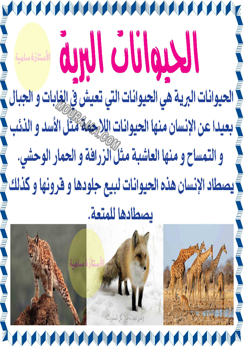 و يتمثل البحث تعريف حيوانات برية و معلومات حوله مع صور لتبسيط درس حيوانات برية في مادة االايقاظ العلمي لسنة أولى ابتدائي