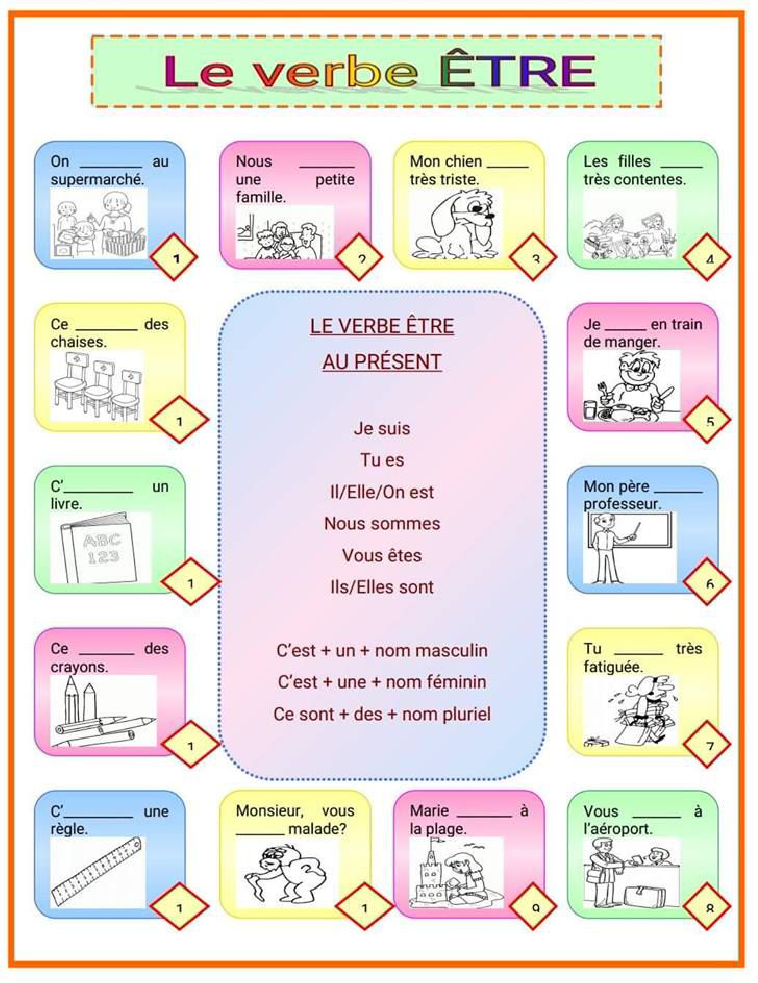 verbe etre est l affiche de lecon verbe etre Pour le simplifier sous forme d'images afin que l étudiant de quatrieme annee primaire puisse organiser ses pensées et informations sur la leçonverbe etre