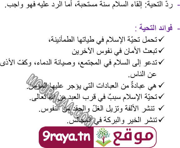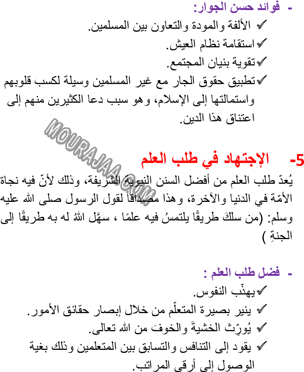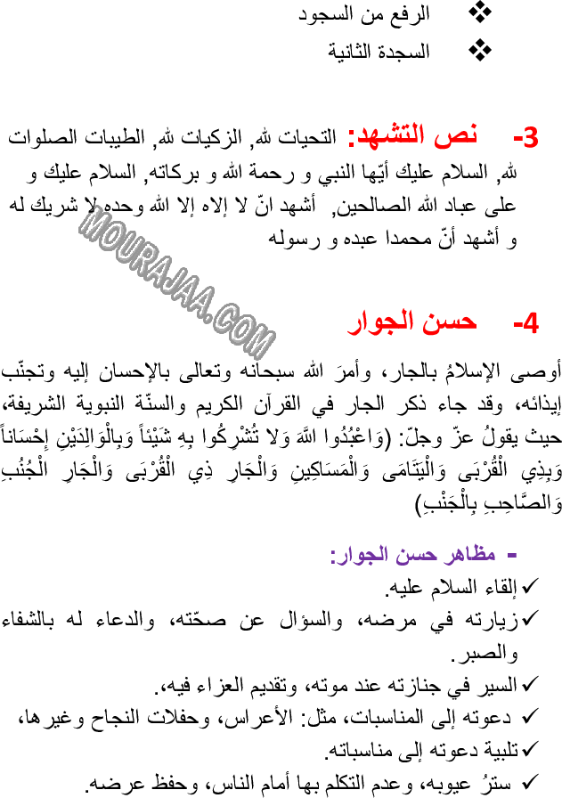 الصلوات الخمس - مراحل الركعة - نص التشهد - حسن الجوار هو عنوان لمحور درس مادة تربية اسلاميةلسنة رابعة ابتدائي