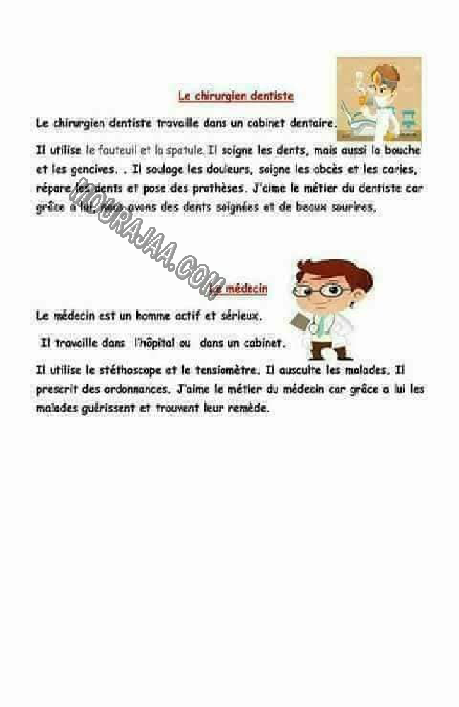 la leçon se deroule sur Les-métiers pour aider l eleve de quatrieme annee primaire Pour revoir ses cours et examens en le téléchargeant sous forme de fichier ou en le visualisant sous forme d'images