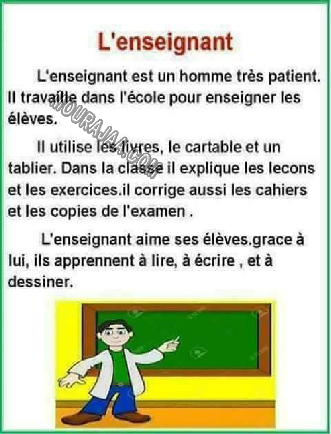 Le but de résumer la leçon Les-métiers est d aider l eleve de quatrieme annee primaire de bien comprendre la lecon en réalisant les relations entre les parties de leçon Les-métiers Et de creation d'une image globale sur la leçon en passant par ses parties, ce qui conduit à une meilleure compréhension de la leçon, et ainsi l'eleve de quatrieme annee primaire de contruire une connaissance complète des concepts de la matiere lect_fr et la compréhension et la perception de leçon Les-métiers