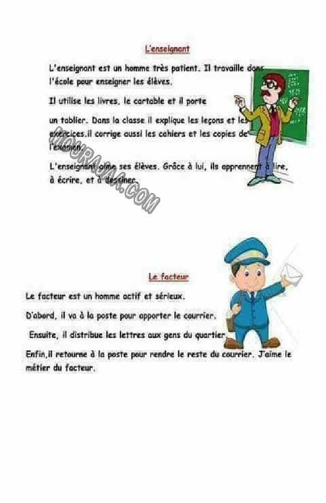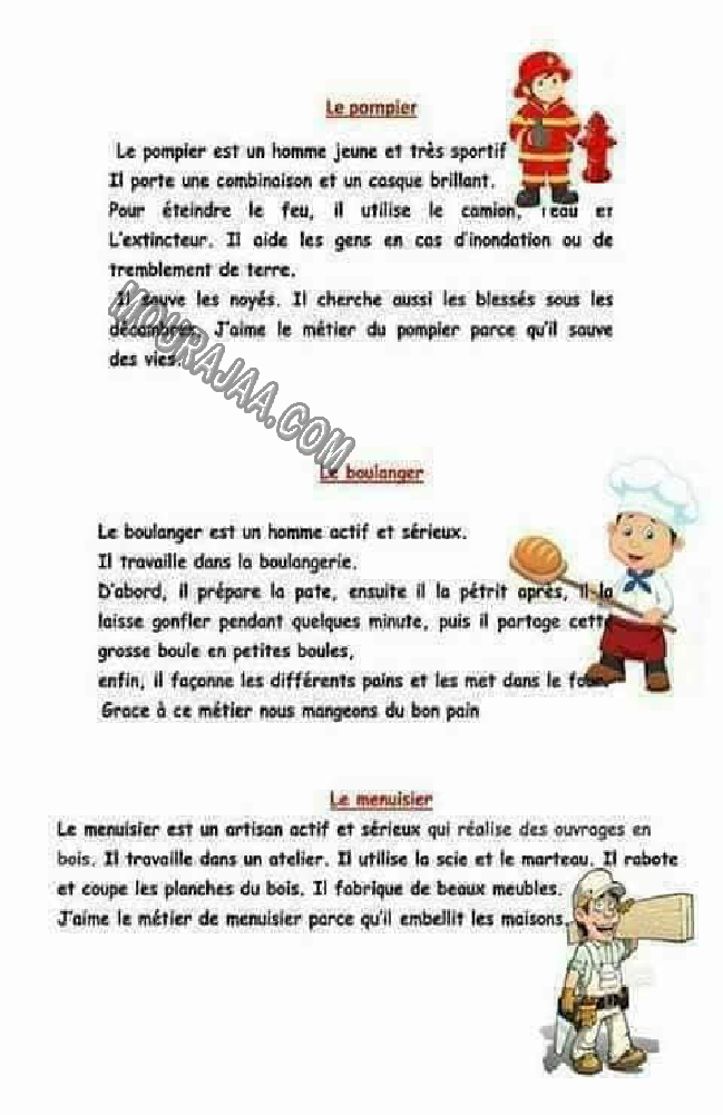 leçon Les-métiers au matiere lect_fr pour les eleves de quatrieme annee primaire .