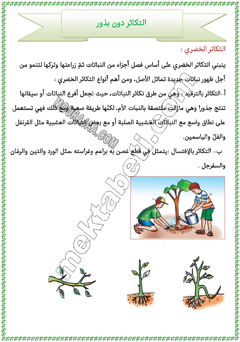 التكاثر دون بذور هو عنوان لمحور درس مادة ايقاظ علميلسنة رابعة ابتدائي