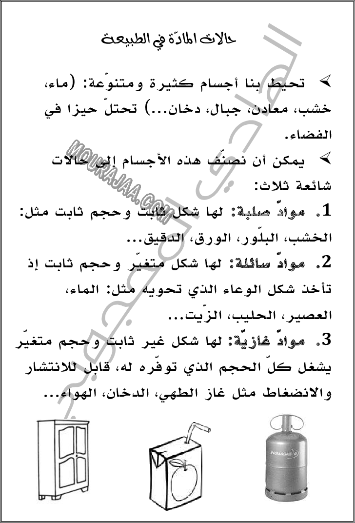 يتحدث الدرس على حالات المادة في الطبيعة لمساعدة تلميذ سنة رابعة ابتدائي في مراجعة دروسه و امتحاناته و ذلك عبر تحميله في صيغة ملف او مشاهدته في صيغة صور