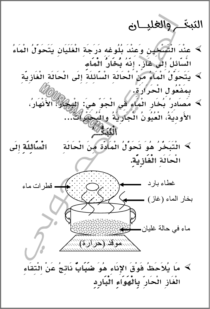 حالات المادة في الطبيعة هو عنوان لمحور درس مادة ايقاظ علميلسنة رابعة ابتدائي
