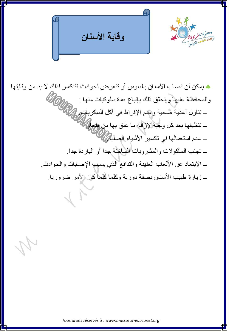 درس حول وقاية الاسنان في مادة ايقاظ علمي لتلاميذ سنة رابعة ابتدائي