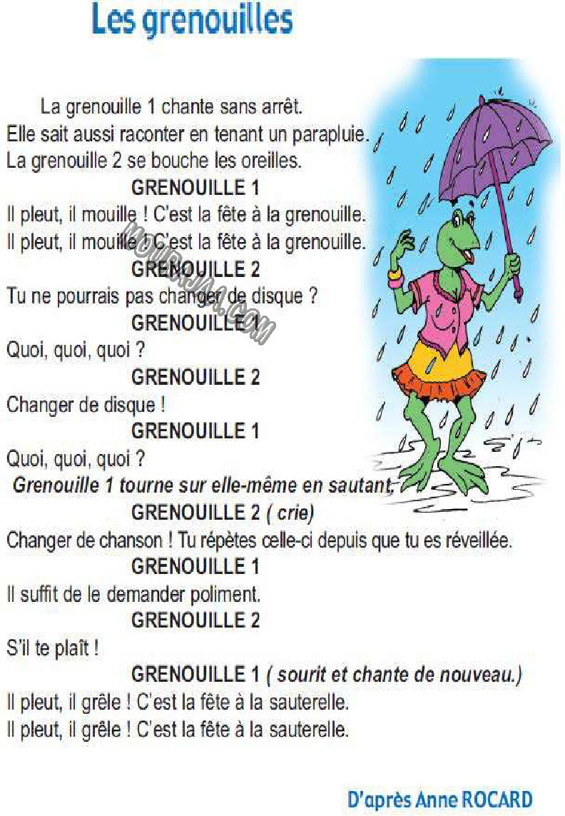 la poeme les grenouilleaide l eleve de quatrieme annee primaire à se formater sur la qualité de la diction et la bonne diction, et donc la représentation nominale des sens de poeme les grenouille