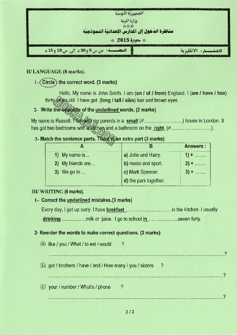 انقيليزية 2015