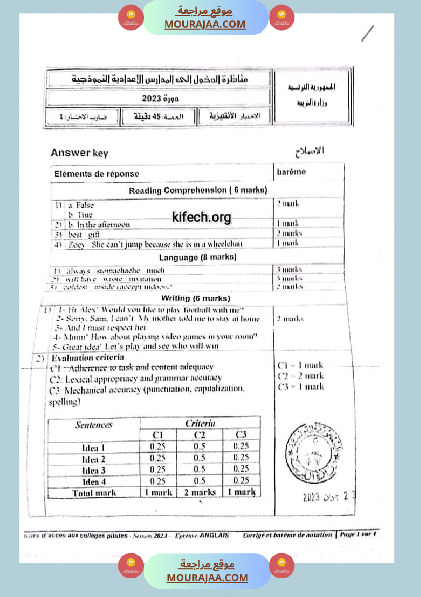 الاصلاح الرسمي لمناظرة الانقليزية 2023