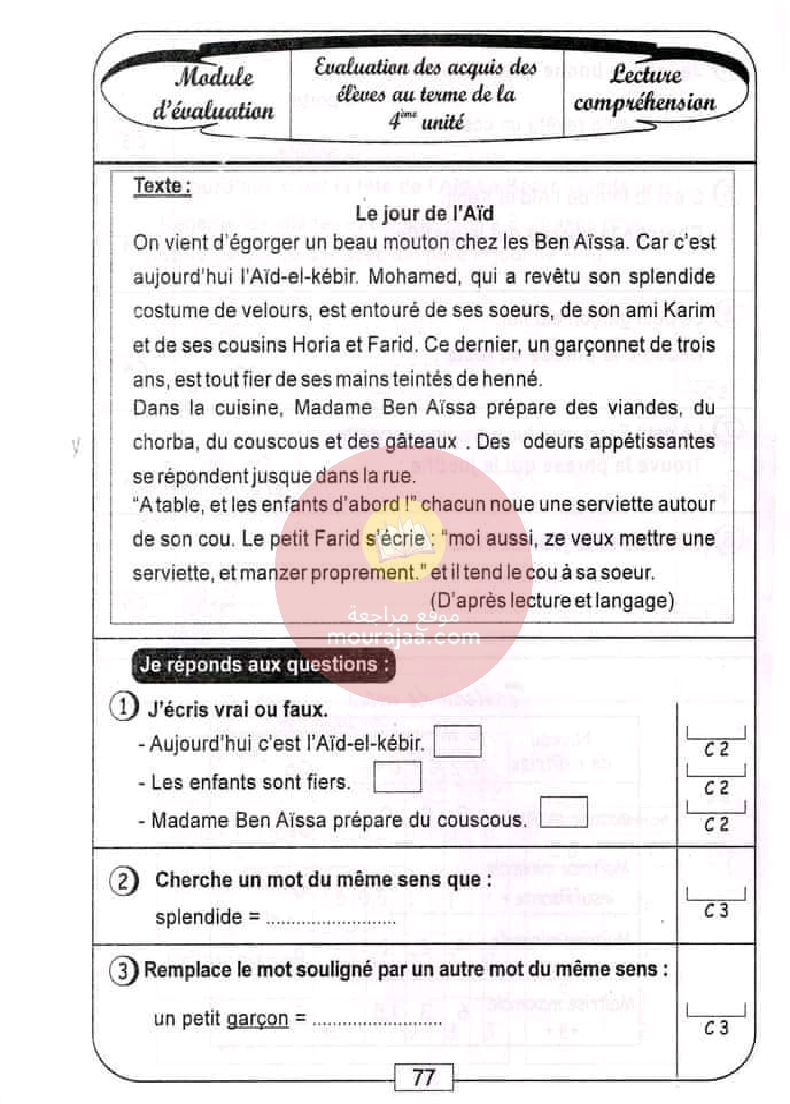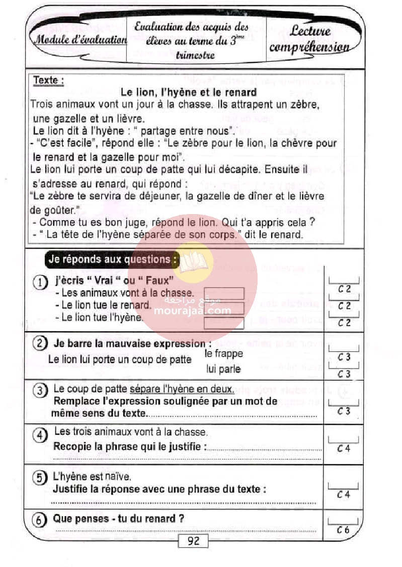 كتاب-الروائز-فرنسية-سنة-رابعة-الثلاثي-الثالث